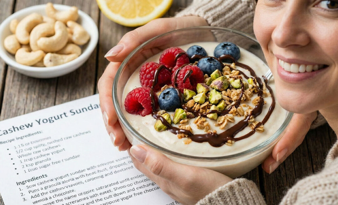 Homemade Keto Cashew Yogurt Sundae recipe - dairy-free and low-carb breakfast.