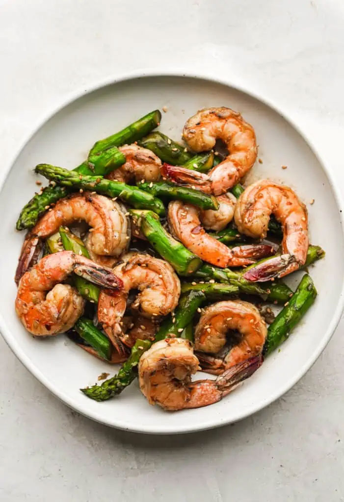 3. Remove the paper towels from the shrimp and heat the skillet again. Remove the asparagus and sauté to tender-crisp with salt and pepper, then serve with the shrimp.