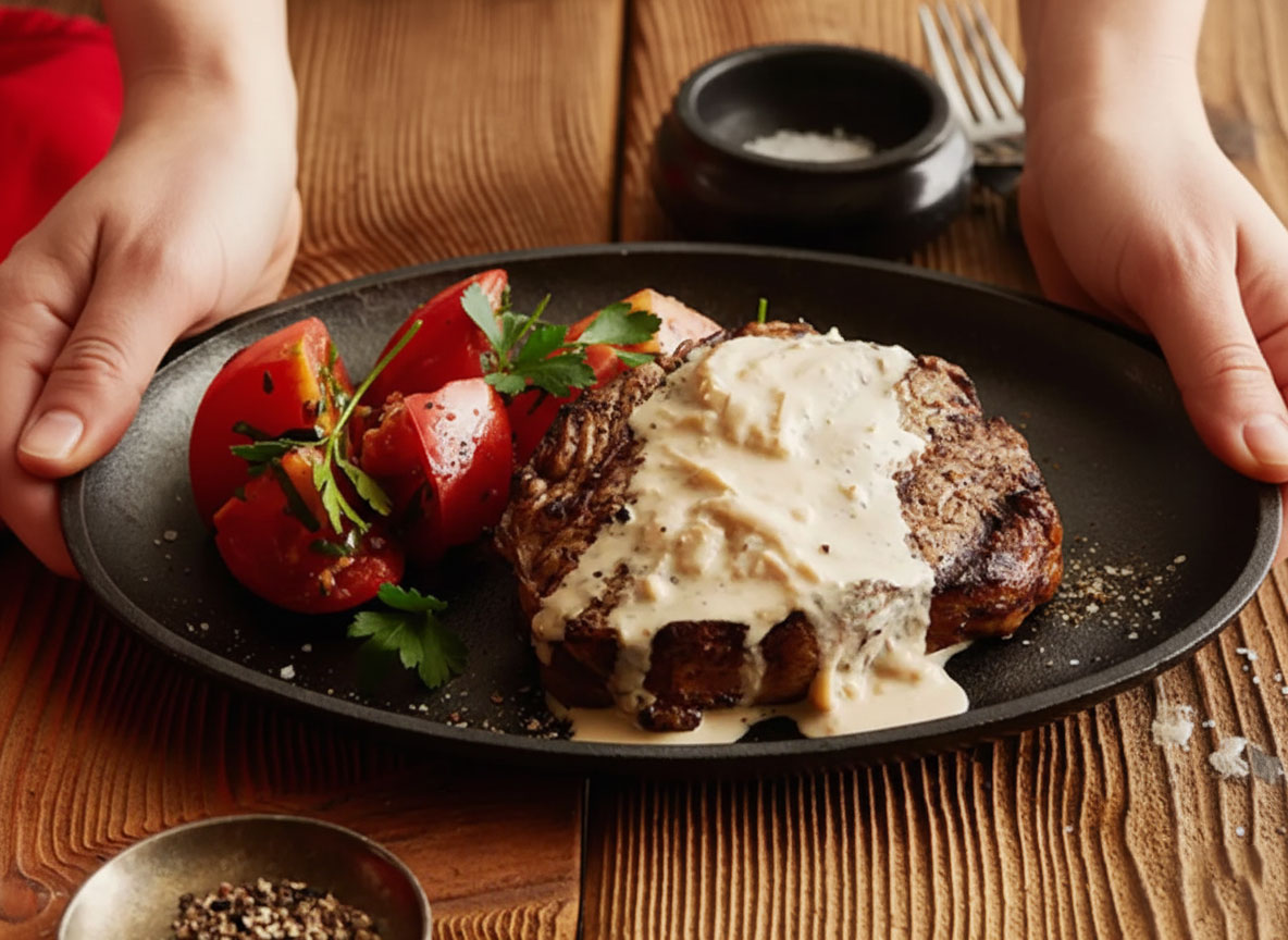 Steak with Cheese Sauce